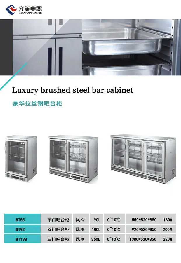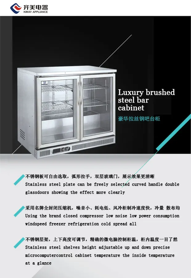 Luxury brushed steel bar cabinet Refrigerating showcase Chiller freezer