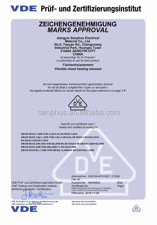 Senphus floor heating cable Certificate
